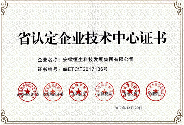 恒生集團企業(yè)研發(fā)中心被認定為安徽省第26批省認定企業(yè)技術中心
